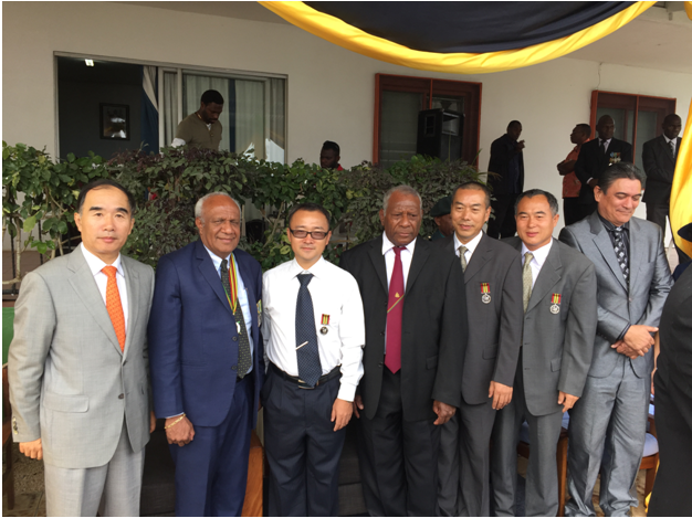 瓦努阿圖獨(dú)立勛章每年頒發(fā)一次,用于獎(jiǎng)勵(lì)對(duì)瓦努阿圖做出卓越貢獻(xiàn)的本國(guó)人以及外國(guó)人。此次受勛的人員有12位,外國(guó)人僅4位。慶典儀式上,袁剛代表集團(tuán)援建項(xiàng)目組表示,將再接再厲做好項(xiàng)目的建設(shè)工作,以一流的施工質(zhì)量向瓦方交上一份滿意的答卷,讓會(huì)議中心項(xiàng)目成為中瓦友誼的橋梁。